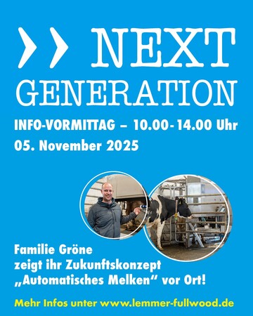 Informiere Dich am 05.11.2025 von 10:00 - 14:00 Uhr über alles rund um das Thema "Doppel 10er Fischgrät Melkstand raus - Zwei M²erlin Melkroboter rein" auf dem Landwirtschaftlichen Betrieb der Familie Gröne | Zum Mittelberg 4 | 33165 Lichtenau